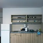 A kitchenette at Apartmany Plzen Zborovska 22 A apartment features a fridge, a stove top, and kitchenware. The nearest bus stop to the apartment is Samaritska, which is approximately 200 metres away.